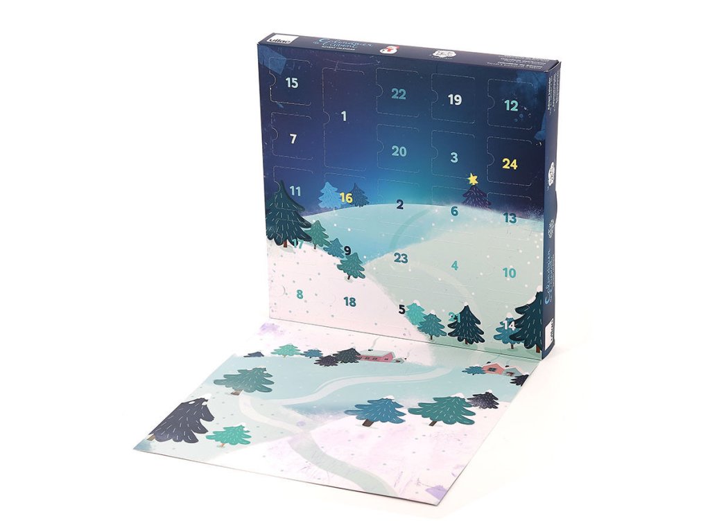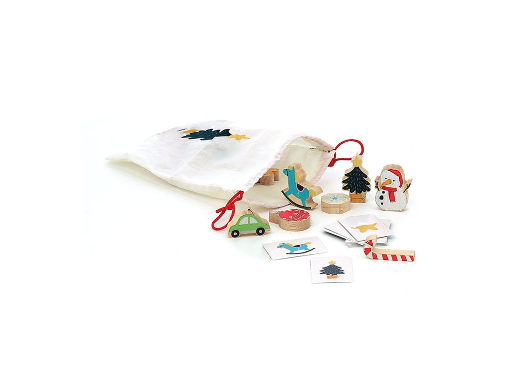 Adventní kalendář, který uvnitř skrývá hru hmatej a najdi! V každém z 24 okének děti najdou dřevěný dílek nebo papírovou kartičku, nechybí ani textilní pytlík. Po otevření celého kalendáře si děti konečně mohou užít hru hmatej a najdi ve vánočním designu.