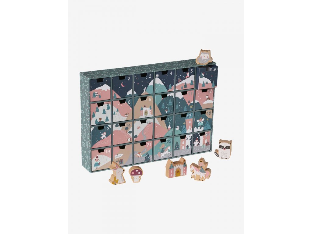 Adventní kalendář v kartonu s hračkami ze dřeva FSC®