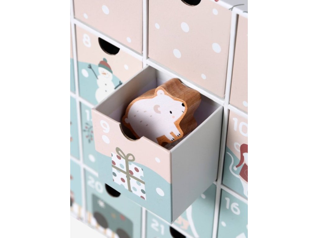 Adventní kalendář v kartonu s hračkami ze dřeva FSC®