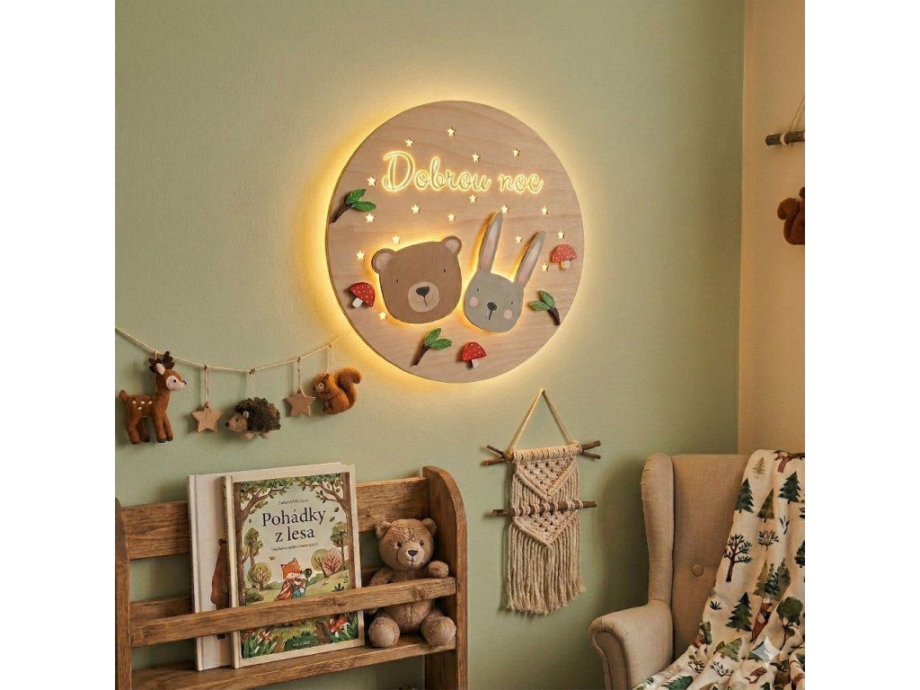 Dřevěná dětská LED lampička s ručně malovanými zvířátky je ideální doplněk do každého dětského pokoje. Tato originální noční lampička z přírodního dřeva vytváří příjemné tlumené světlo, které pomáhá dětem klidně usínat. Díky ruční malbě je každá lampička jedinečná a přináší do pokoje pohádkovou atmosféru.
