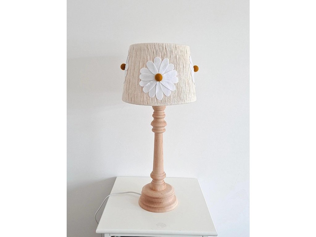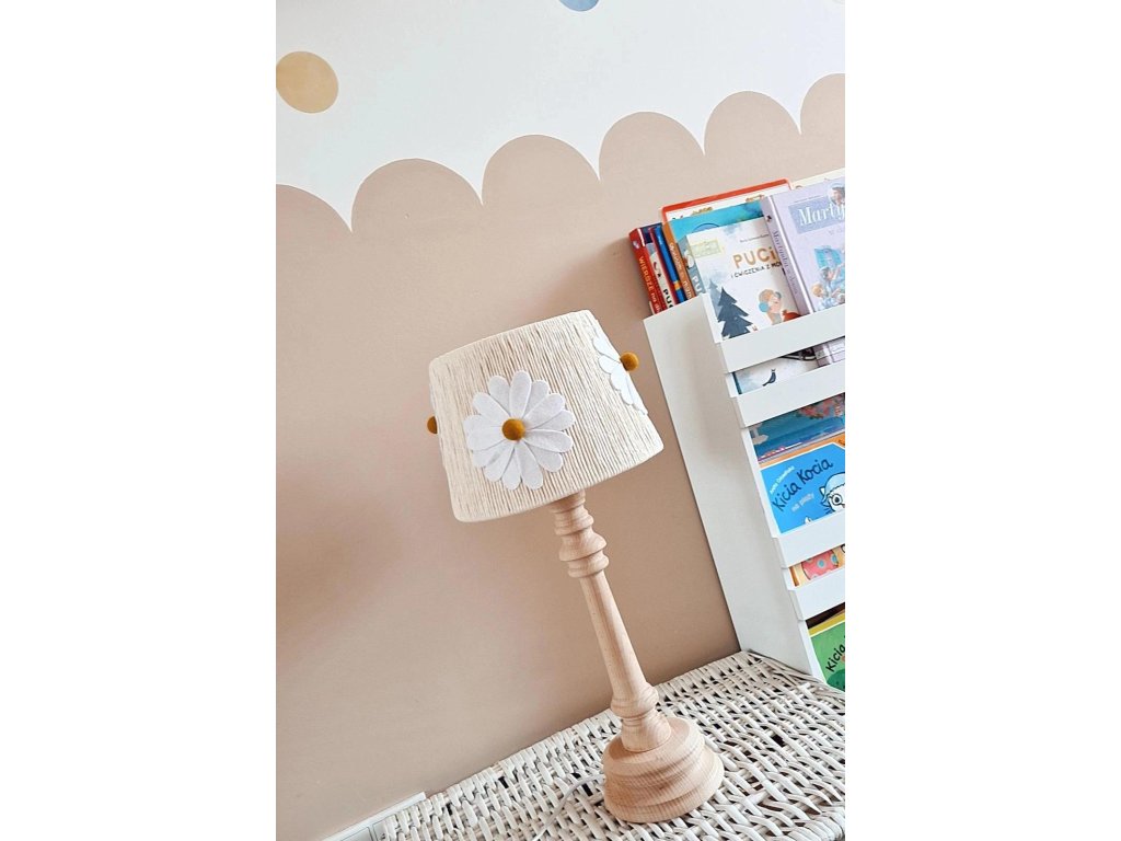 Ručně vyrobená lampička Kopretina je originálním doplňkem nejen dívčího pokoje. Stínidlo lampičky je vyrobeno z bavlněného provázku a filcových květin. Během dne bude lampička skvělou dekorací pokojíčku a večer poslouží jako jemný zdroj světla.