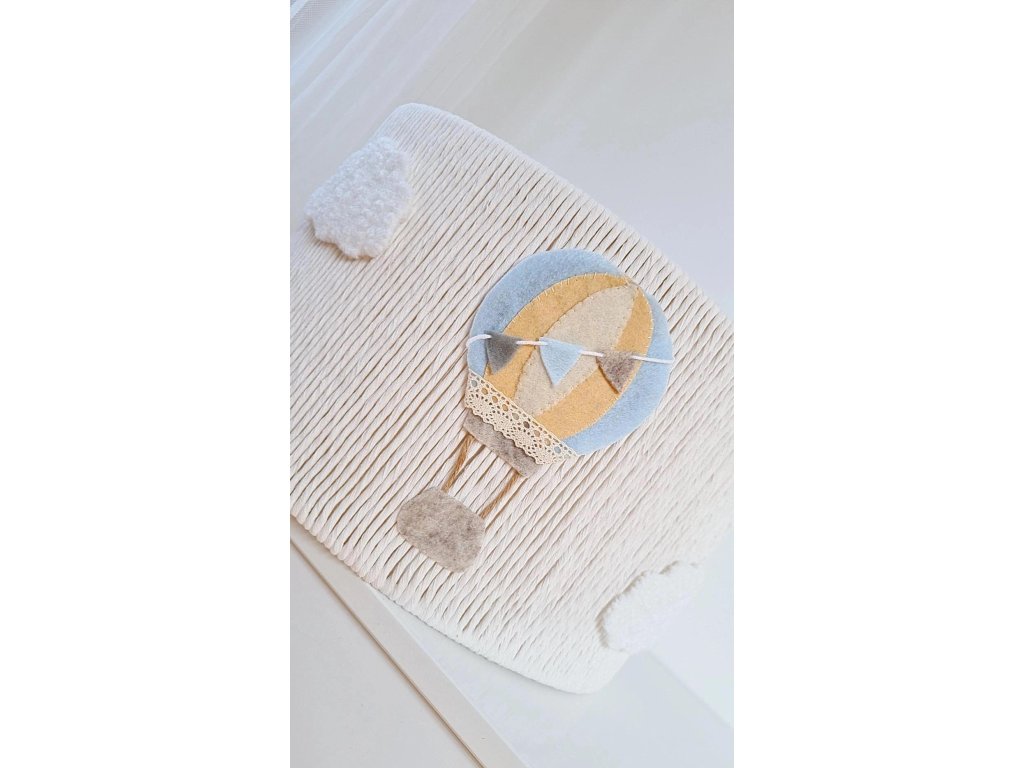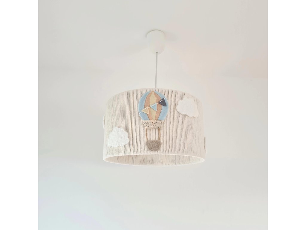 Unikátní dětský lustr, v macrame stylu zdobený létajícími balóny.