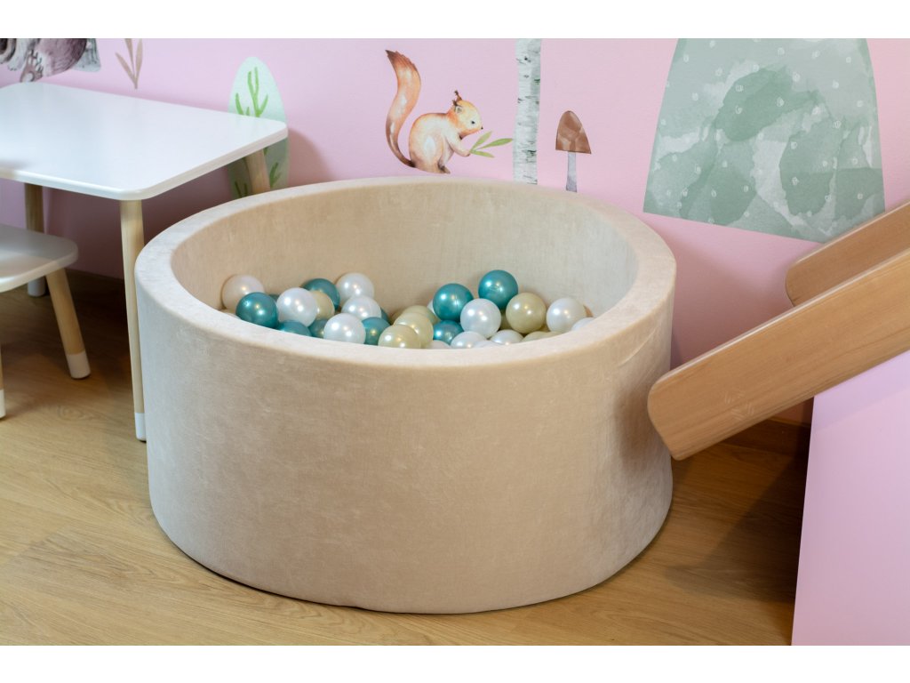 Suchý bazének s 300 míčky - jemný velvet, kulatý, béžový